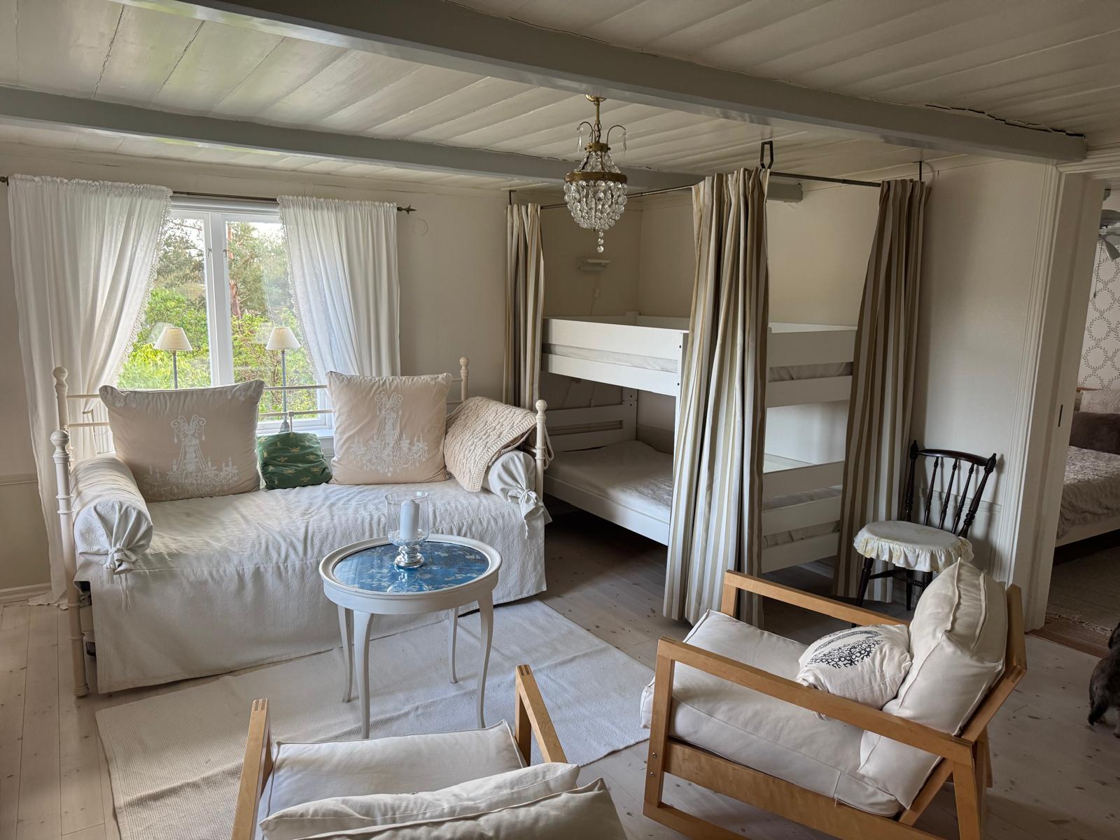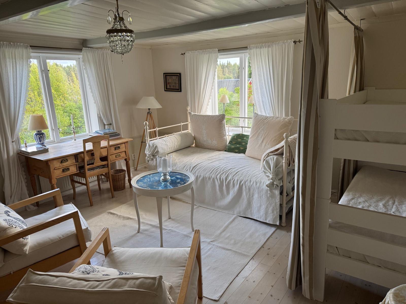 Our lovingly renovated former schoolhouse, Finnestad Syrenbacken, is idyllically located on the Värmlandsnäs peninsula in Värmland – surrounded by meadows, forests, and wide-open nature. From the moment you arrive, you can feel the special calm of this place. Here, historic charm and cozy comfort come together to create a truly unique holiday home.